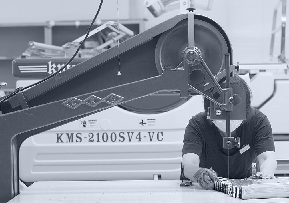 1986年の創業以来、カットソー分野で培った技術を中核に、お客様と共に歩んできました。現場で磨かれた専門家の知識と技能は蓄積され、多様な素材やアイテムへ柔軟に対応できる技術力へと進化しています。