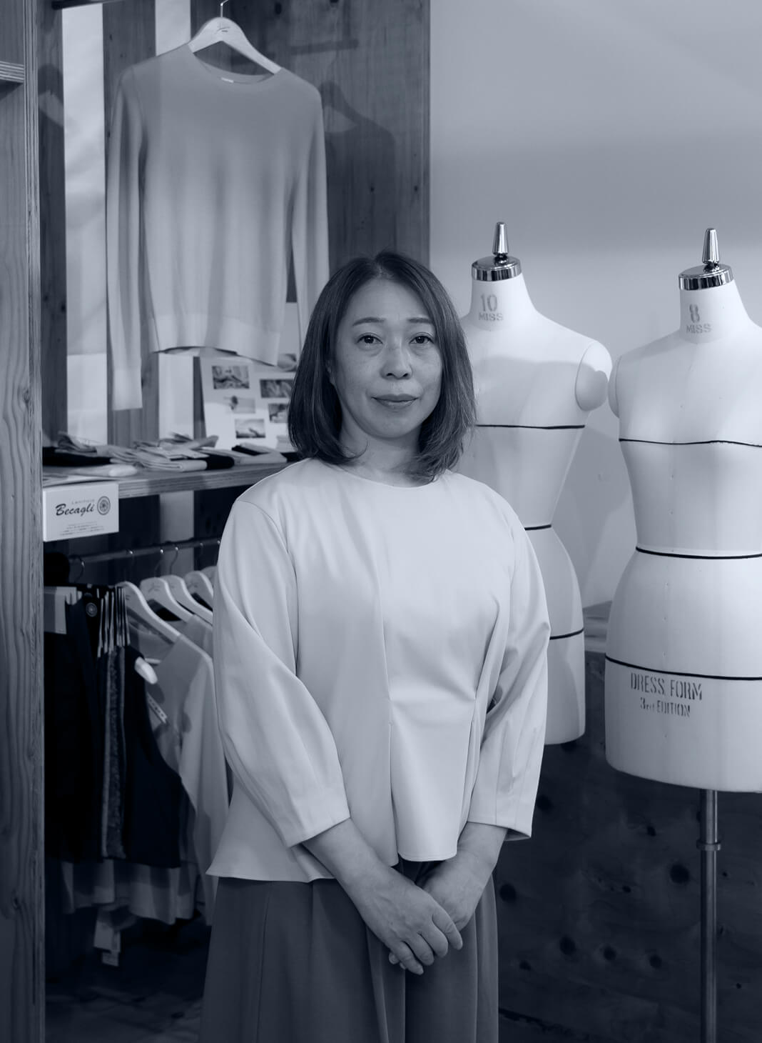 「良い服を、確実に、最高の状態で届ける」ことに全てを注いでいます。キャリアの中で築き上げたパタンナーさんや工場との信頼関係を武器に、積み上げた納期遵守率とリピート率こそが私の誇りです。新しい素材とナカノアパレルの技術を融合し、常に時代を凌駕する一着を創り出し続けます。